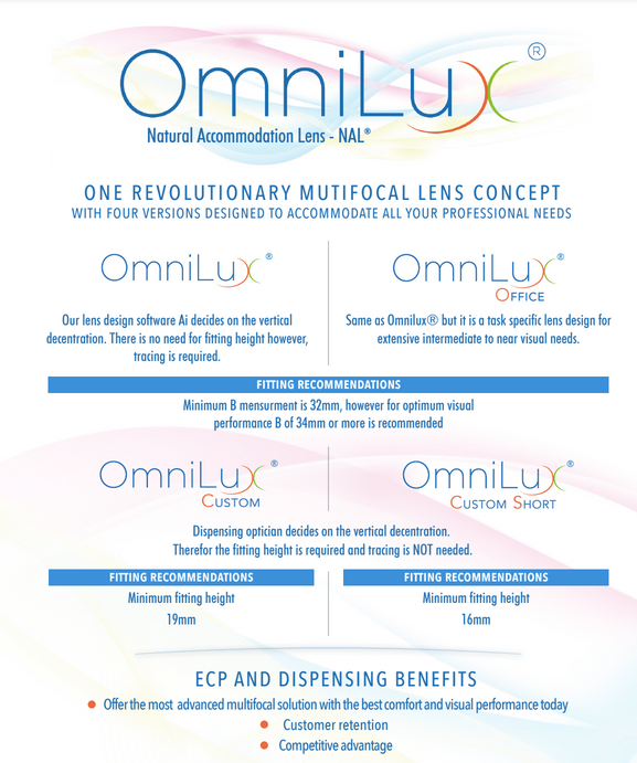 • Optimized fields of view, even with highly wrapped frames & higher prescriptions